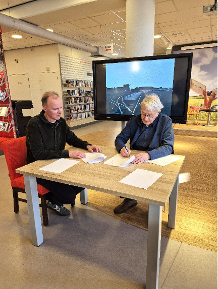 Foto: de heer Robert Schuurman van de bibliotheek Bergen en rechts de heer Aalt van Huissteden bestuurslid HVB